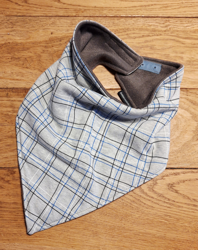 Doekje ruitDit doekje/ sjaaltje is gemaakt van zachte tricot en dunne fleece, en bedoeld om speeksel op te vangen. De tricot in combinatie met fleece zorgt voor een soort tunneleffect, de fleece laat geen vocht door.